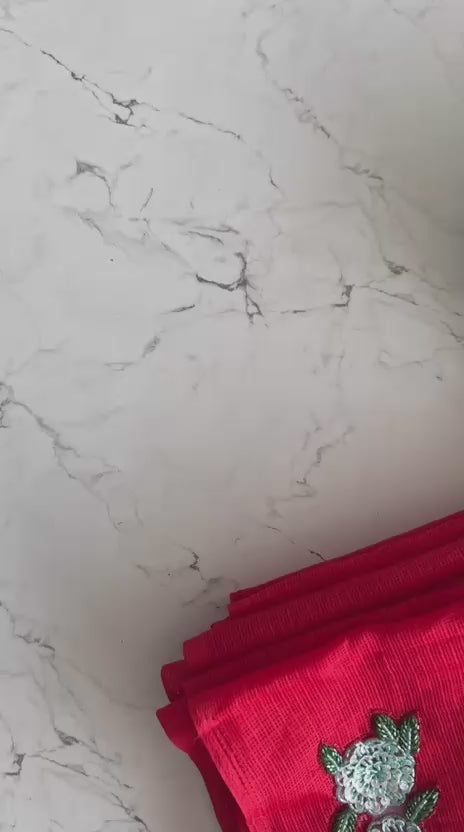 The Rajsi Noor Saree features a premium Kota Doriya fabric, enhancing its lightweight and breathable qualities. The multicolor handwork and cut danna sequin detailing at the pallu elevate its visual appeal, making it suitable for formal occasions. The accompanying unstitch tone-to-tone blouse offers versatility in styling. This designer collection emphasizes pure fabric and meticulous craftsmanship.